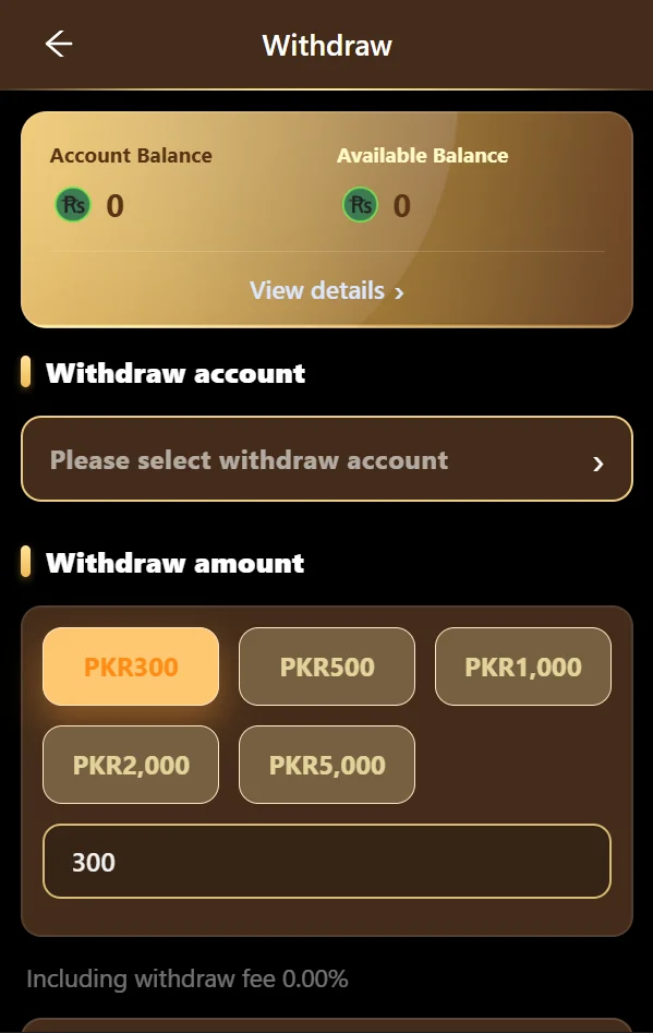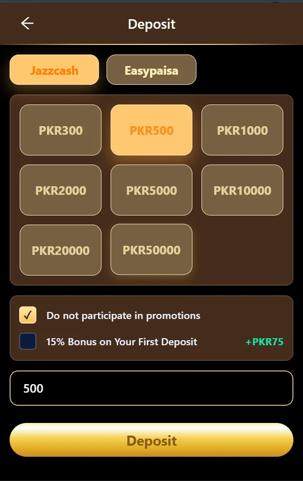 Users can deposit money through local options like Easypaisa, JazzCash, or bank transfer. Withdrawals are fast, secure, and have 0% commission for VIP users. Higher VIP levels can withdraw multiple times per day with ease.