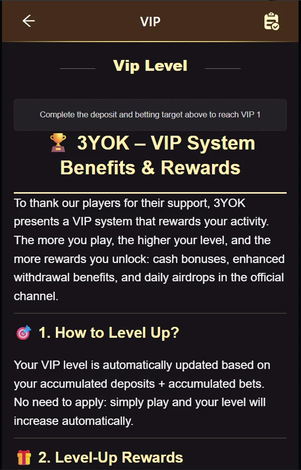 3YOK Game – VIP System Benefits & Rewards